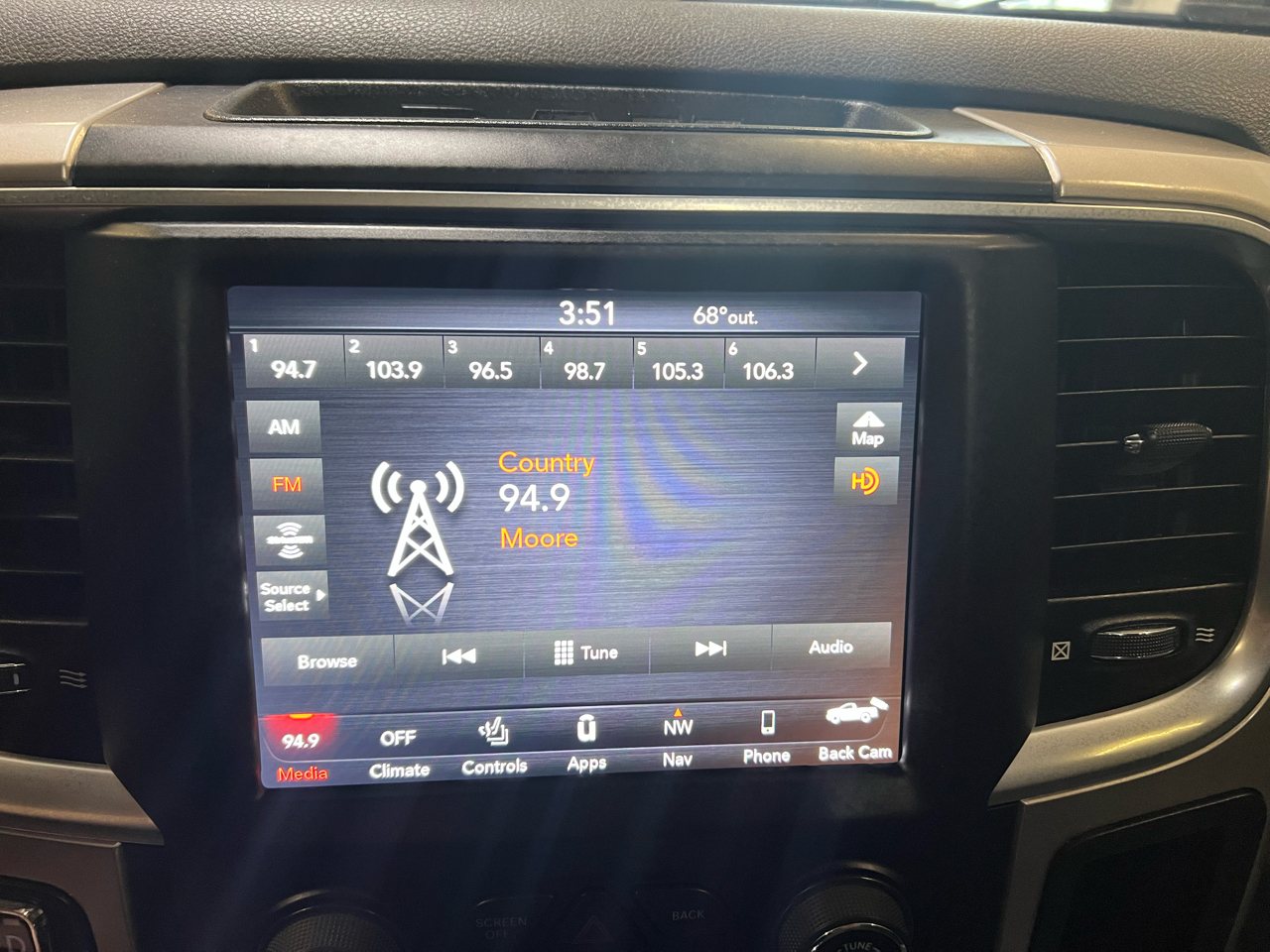 With a Black exterior, 20" x 8" Semi-Gloss Black Aluminum wheels, and Black Side Windows Trim, this RAM 1500 Classic exudes style and sophistication wherever you go. The Auto On/Off Halogen Headlamps with Delay-Off and Active Grille Shutters not only enhance visibility but also add a touch of elegance to the overall design.